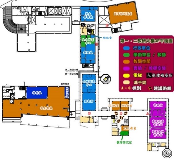 ▲第一、二教研大樓5樓平面圖 ▲第一、二教研大樓3樓平面圖