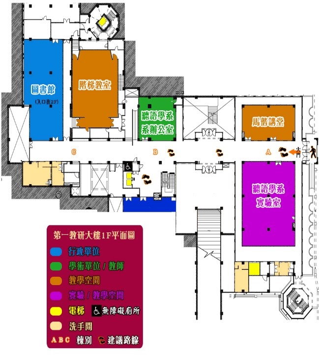 ▲第一教研大樓1樓平面圖 ▲第一教研大樓 夢分子教室斜坡道