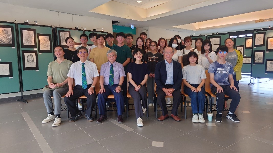 全人教育中心本(112-2)學期開設「素描基礎」課程(授課教師為施瑾老師)於6月5日-24日假第二教研大樓4樓D區沙發區舉辦期末成果展,並於6月17日舉辦開幕茶會,會中馬偕醫院蕭聰穎董事長、李居仁校長、蕭旭府學務長以及全人教育中心楊明正主任蒞臨指導。