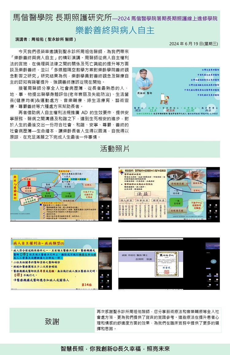 [活動回顧]  長期照護研究所辦理「樂齡善終與病人自主」