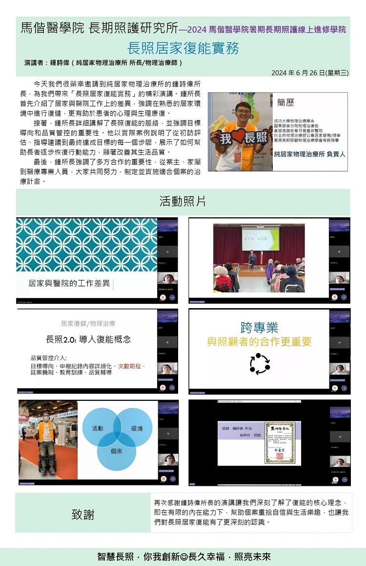 [活動回顧]  長期照護研究所辦理「長照居家復能實務」