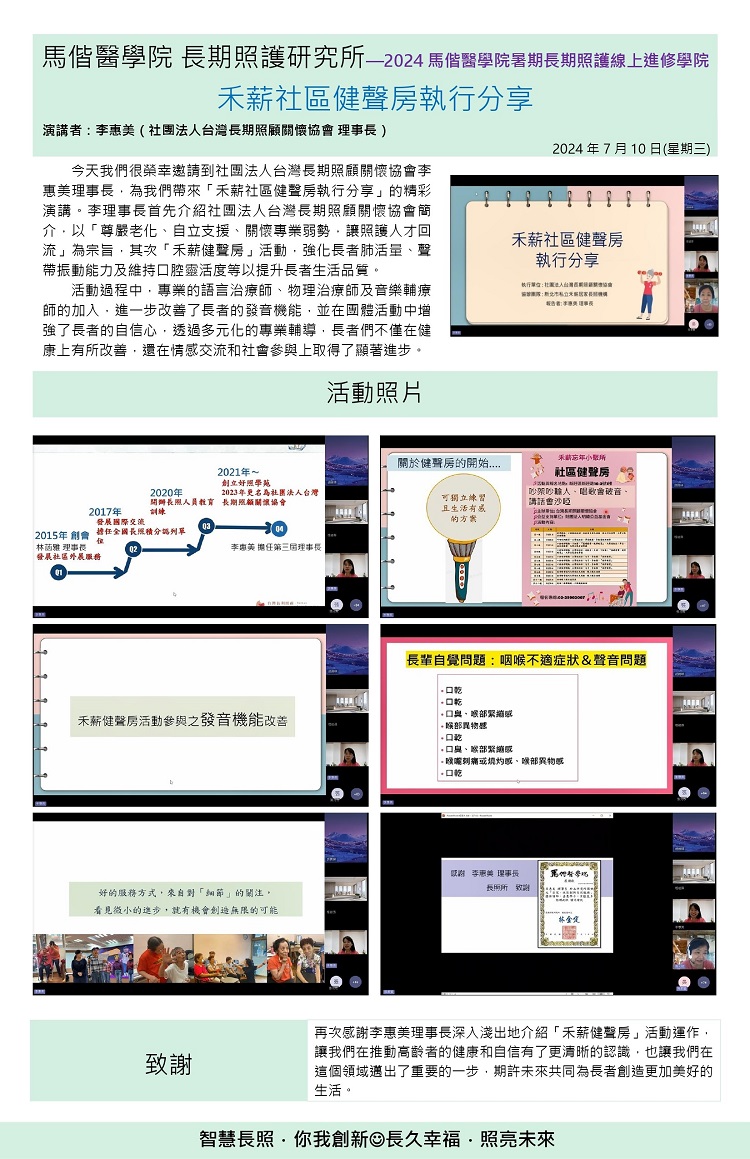 [活動回顧]  長期照護研究所辦理「禾薪社區健聲房執行分享」