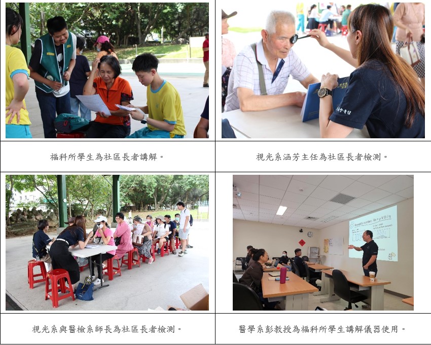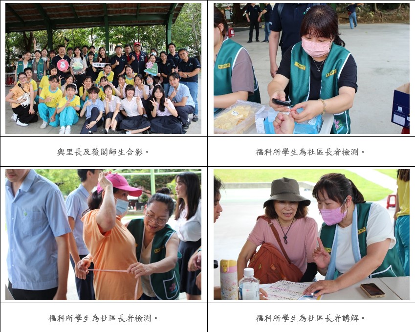 馬偕醫學院福科所學生在校學習檢測專業的知識後,攜手薇閣中學到復興公園廣場辦理『健康,都是薇了您』,讓社區民眾們體驗檢測、參與闖關拿好禮,一同實踐社會責任,並感謝中心里里長熱情參與與協助