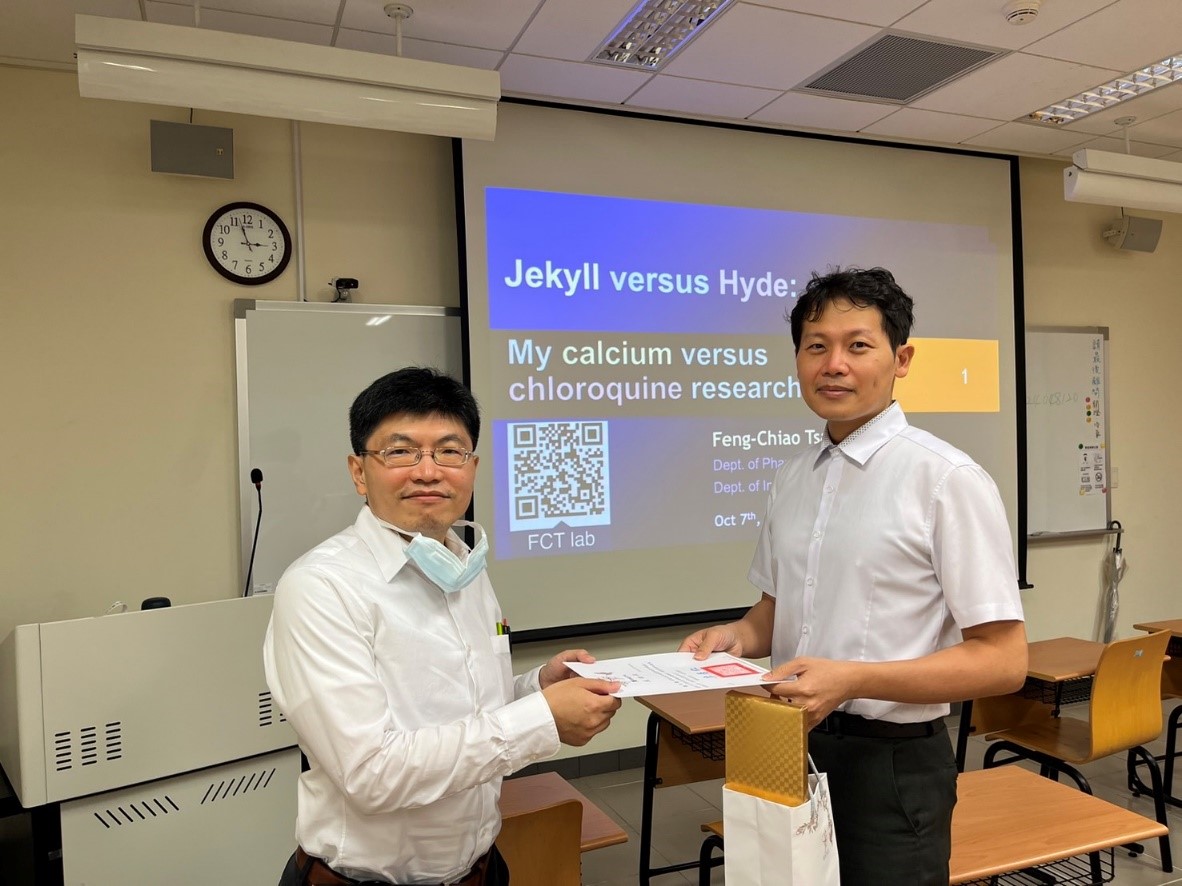 生醫所辦理113-1專題演講,於113年10月7日(星期一)下午1:10-3:00,在第二教研大樓G區5樓525教室舉辦。本次由洪崇烈老師敬邀台灣大學醫學院藥理所__蔡丰喬副教授蒞校,講題為:「Jekyll versus Hyde: My calcium versus chloroquine research」分享其精彩的專業見解,豐富多元的學識內容,讓與會師生受益良多。