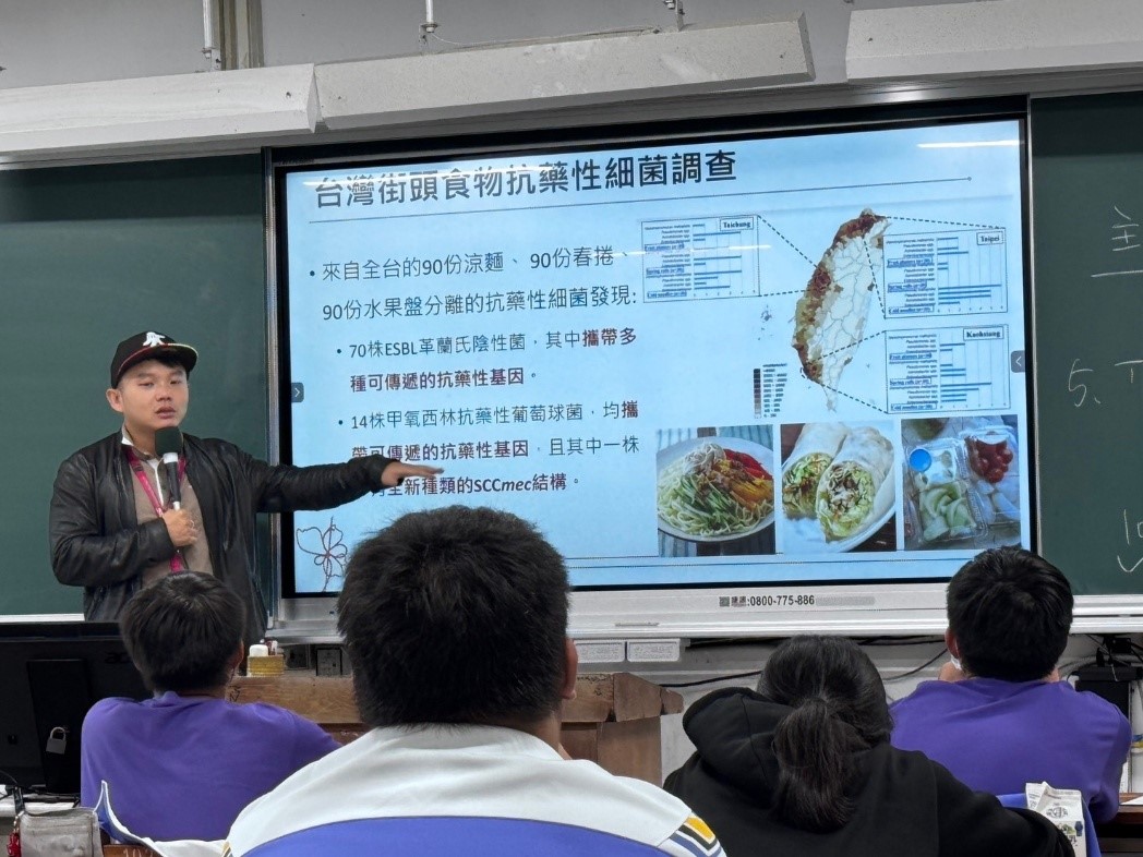 此次課程針對高一的書報討論課程,首先透過馬偕醫學院醫學檢驗暨再生醫學學系_楊宗穎老師針對抗藥性細菌的進行了詳細的講解。感染抗藥性細菌是不可避免的,這不僅是醫學上的挑戰,也是生活中的隱患,我們可以由抗生素得到緩解感染的症狀,課程中老師分享研究分析及生活的案例,並講解過去經驗讓同學有更多啟發,也許過程可能辛苦,但回想過去的辛勞,將會激勵同學繼續前進。