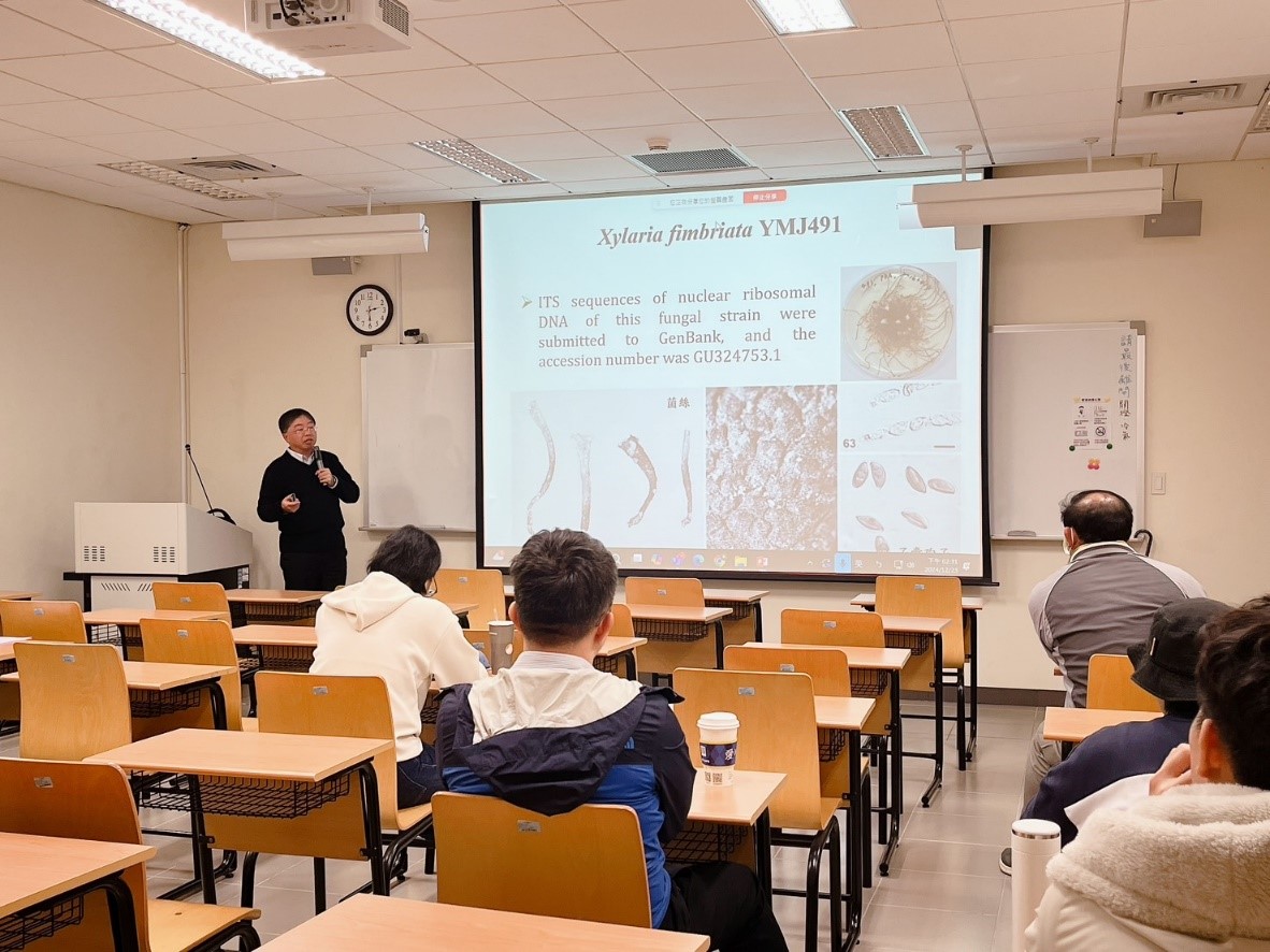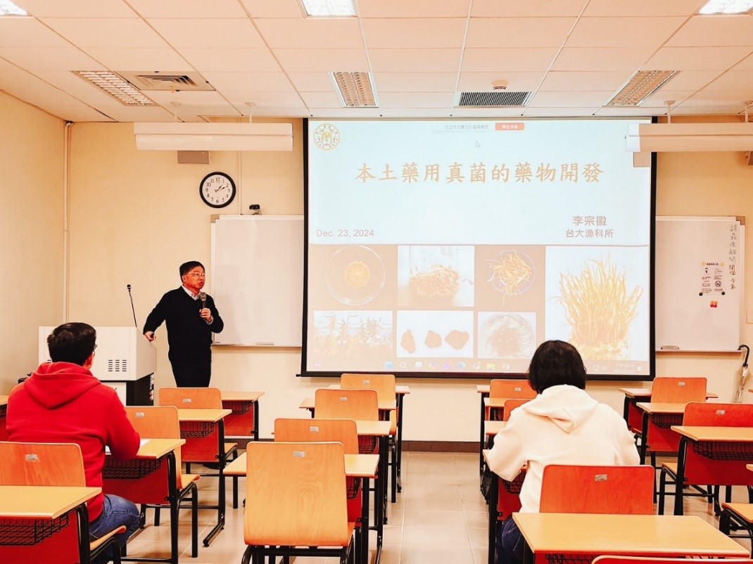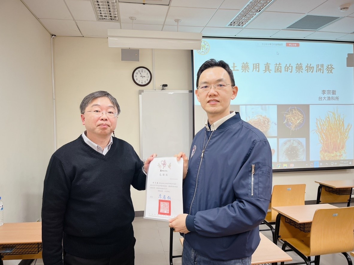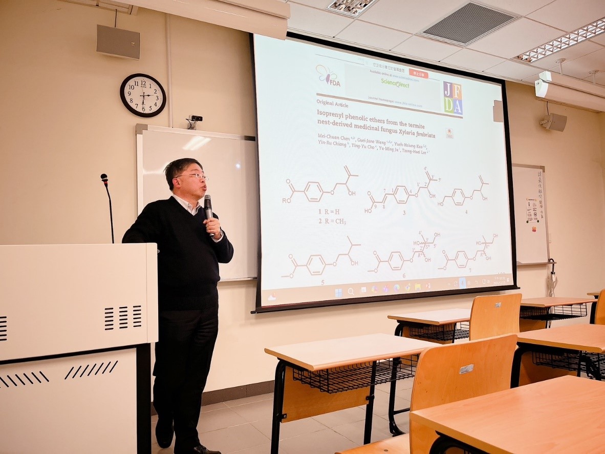 生醫所辦理113-1專題演講,於113年12月23日(星期一)下午1:10-3:00,在第二教研大樓G區5樓525教室舉辦。本次由王士維老師敬邀國立臺灣大學漁業科學研究所_李宗徽教授蒞校,講題為:「本土藥用真菌的藥物開發」分享其精彩的專業見解,豐富多元的學識內容,讓與會師生受益良多。