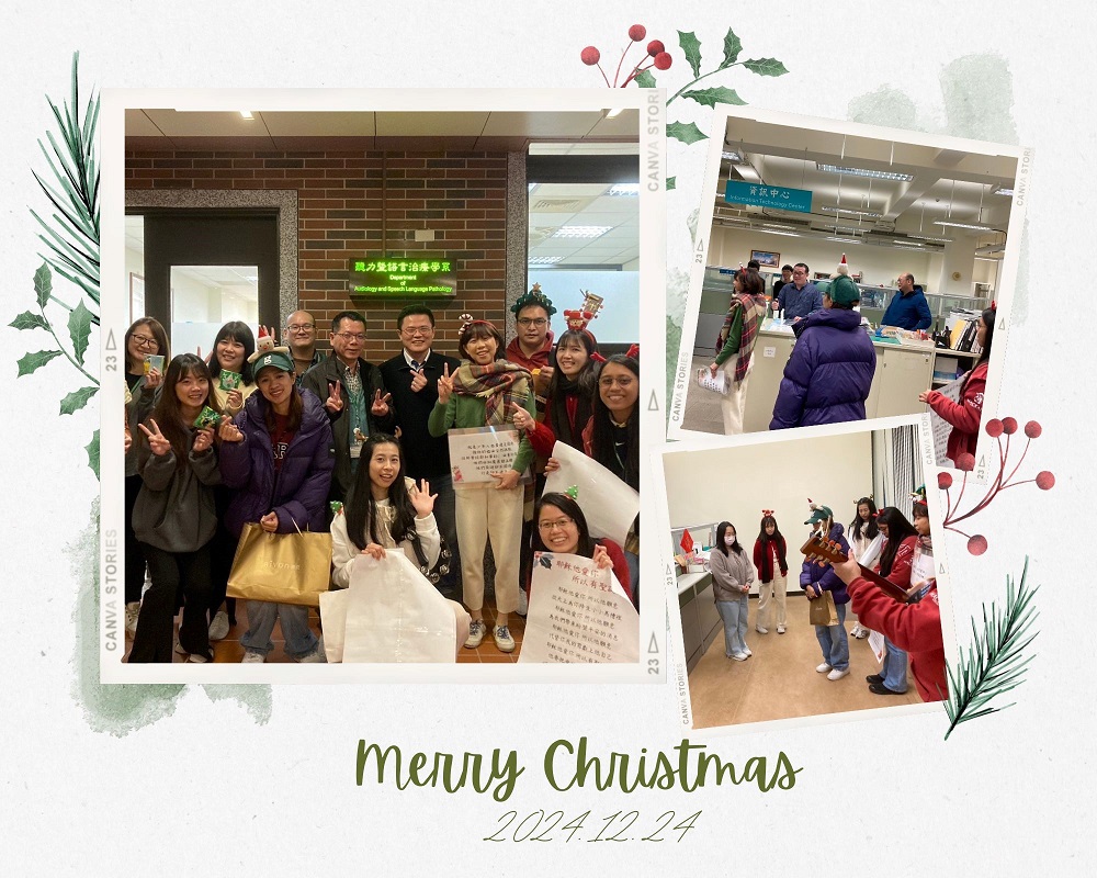 最後,在平安夜的這天,禕倫牧師帶著一些教職員到校園各處室報佳音、分享關於聖誕節的小信息,並為每個處室的教職同仁祝福禱告。在這年末的時刻,不只一同開心歡慶,互相關心,也能回頭看見每個恩典的痕跡,並有那安靜享受真實平安的時刻。