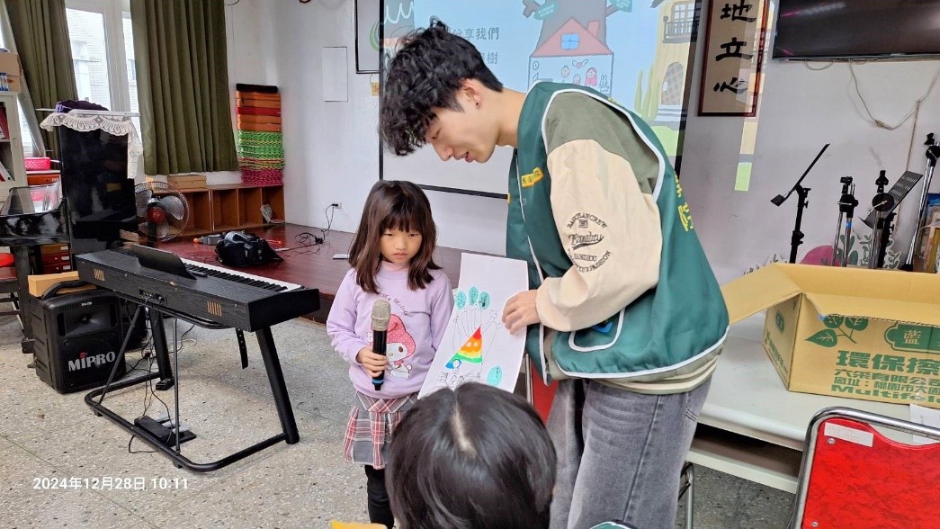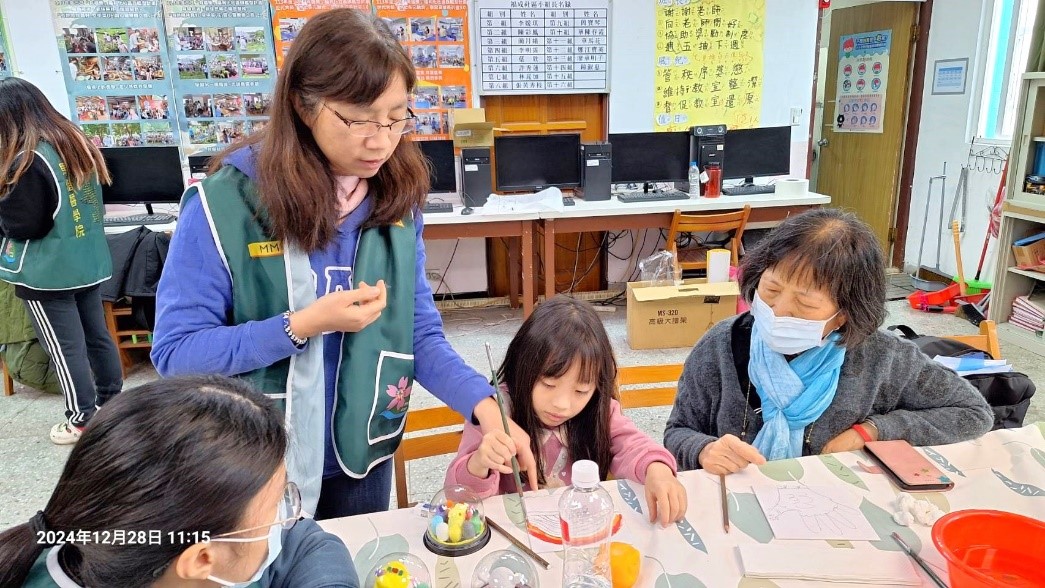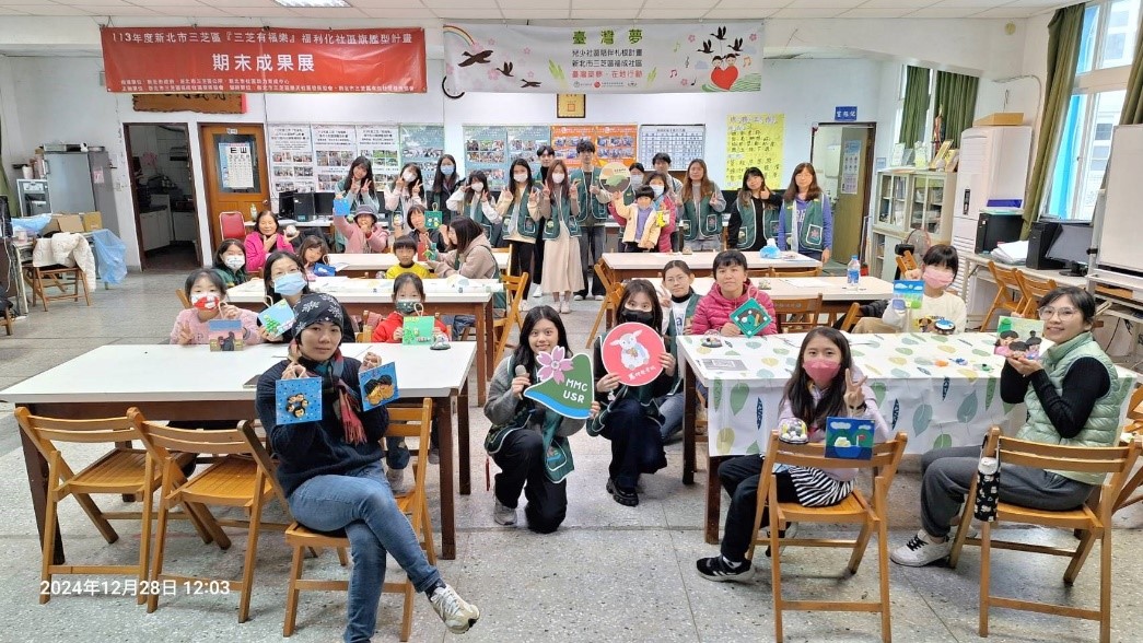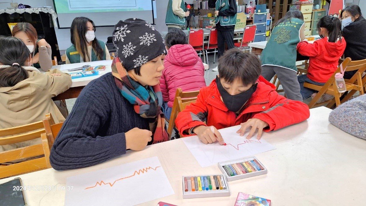 於晴朗的好日子,帶著【藝術治療概論】課程的學生於113/12/28至福成社區用藝術與溫暖帶給親子們滿滿的關愛
