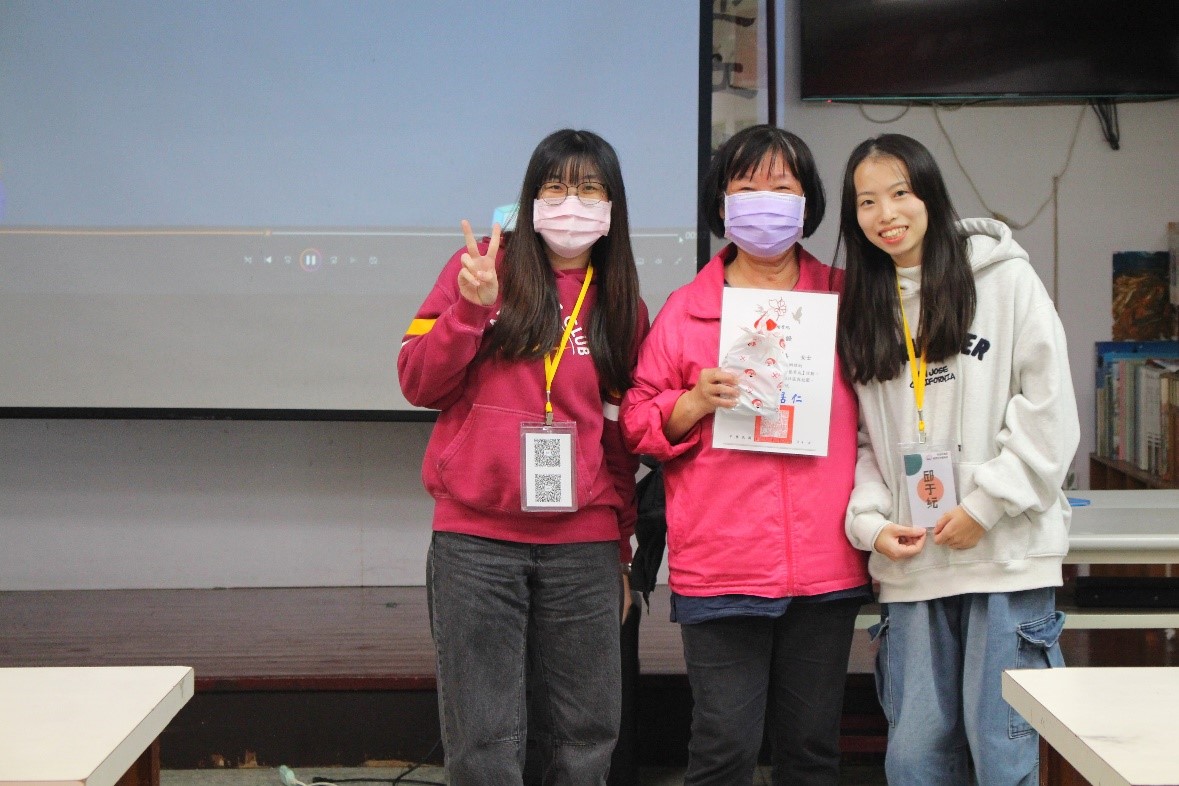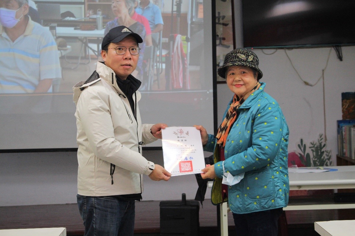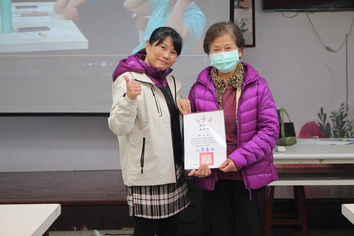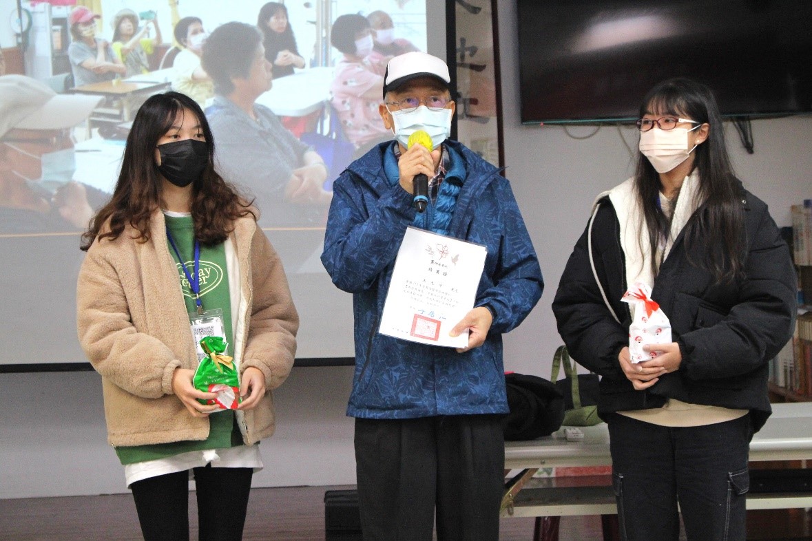 來到典禮的尾聲,播放著同學們用心製作的影片,幫助長者們回憶起這段日子學習到的成果,同時也為福成社區所有參與的長者們頒獎與贈禮,希望未來能往前再進一步。
