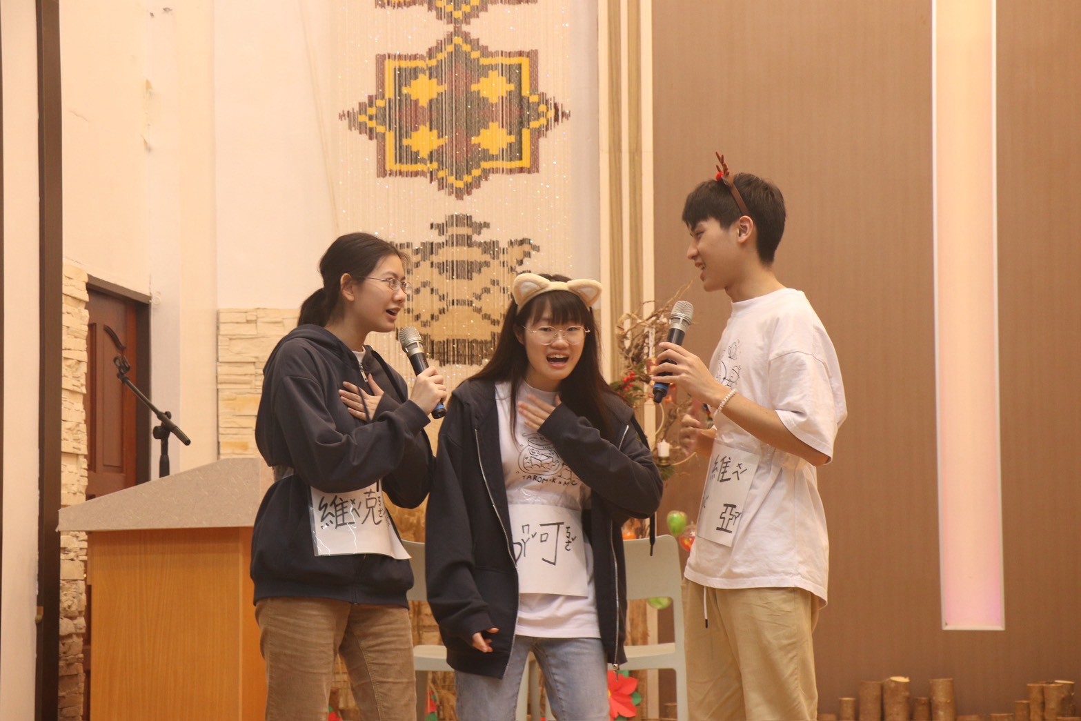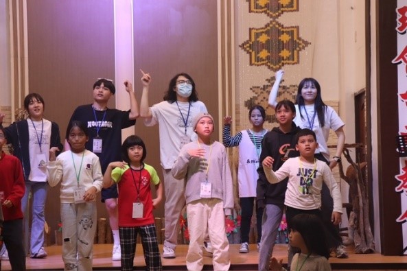 馬偕隊員、當地青年及小朋友們上台表演晚會練習時間所練習的成果,加入馬偕隊員準備的一些表演,與孩童及青年一同享受歡樂的氣氛。