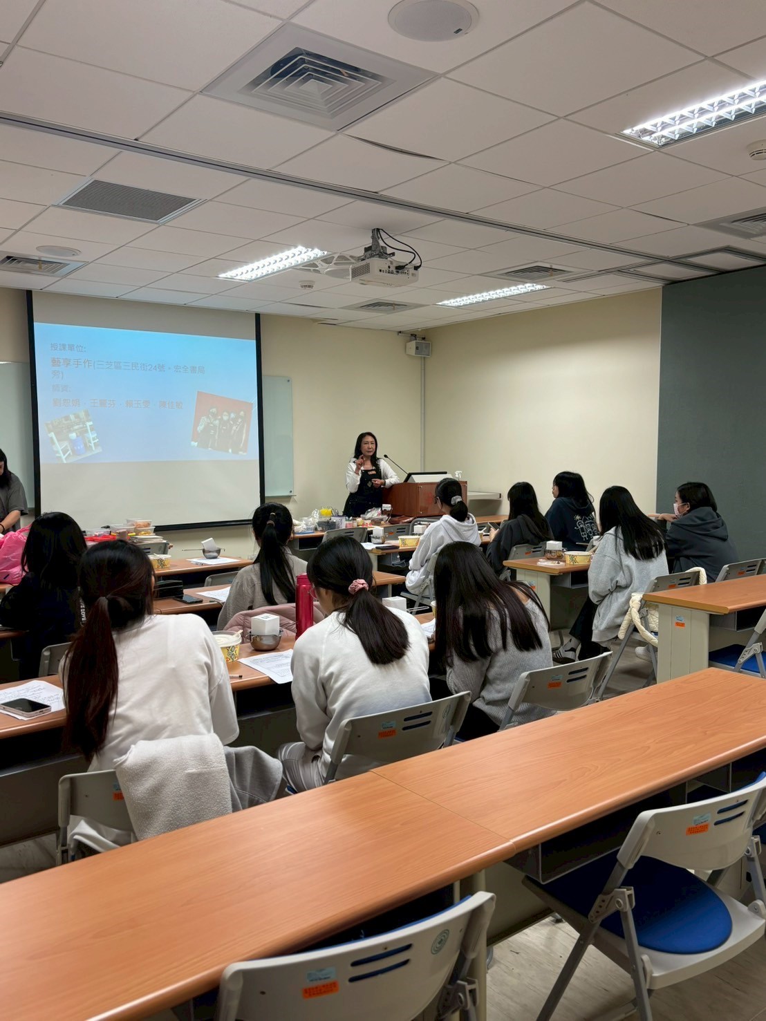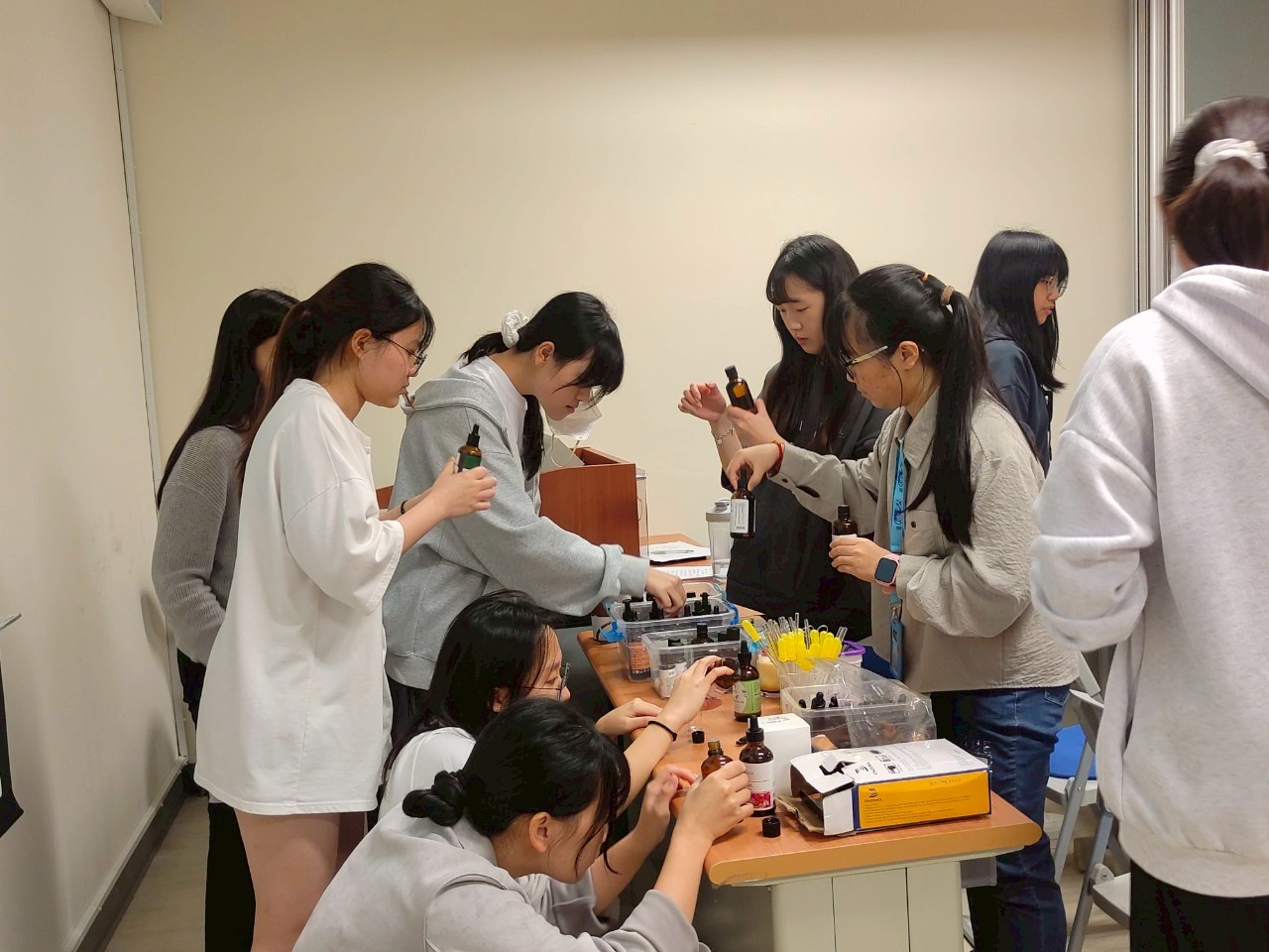 現場充滿精油與融蠟香氣,氛圍溫馨療癒,學員們彼此分享香氣配方與造型靈感,交流熱絡。大家的作品多樣而富有創意,有些選擇柔和的薰衣草與洋甘菊搭配出舒緩風格,有些則挑選柑橘與尤加利展現清新活力,成品美感與實用兼具。根據活動前後問卷回饋顯示,學員普遍表示對香氛知識有明顯提升,並願意將此次學習應用於日後生活中。此次工作坊不僅帶來創作成就,更強化學生對於「感官生活美學」的實踐力與關注度。
