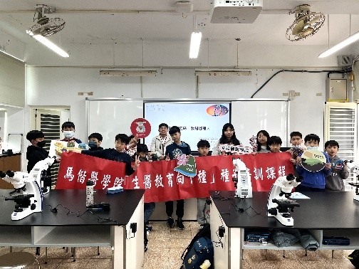 此次活動請本校醫學檢驗暨再生醫學學系楊宗穎助理教授至金山高中北海岸資優未來科學班,以「YTR流量密碼—我是哪裡人」為主題,教導金山地區14位國小生,從生物的基本組成-細胞,講述至細胞核中的DNA。