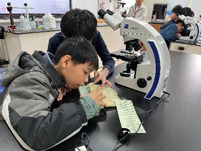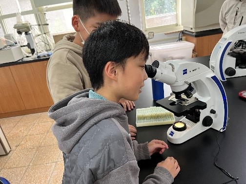 ▲金山國小與金美國小同學進行顯微鏡操作與觀察