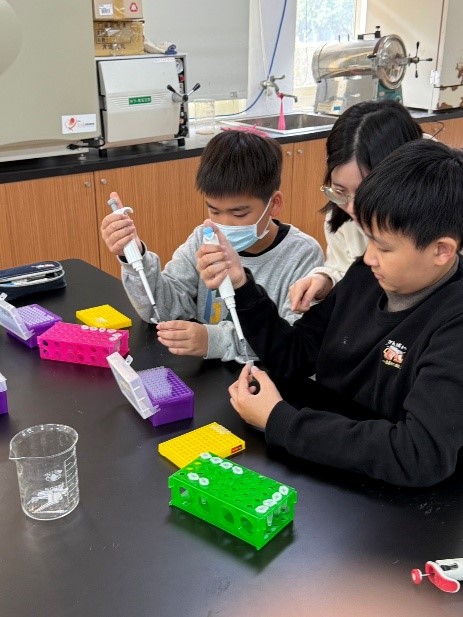 除了理論講解,課程亦設計實作單元,讓學生實際操作與觀察DNA片段的放大過程,從中體會分子生物技術的魅力與精準度。學生在實驗中展現高度參與與熱情,對PCR技術的理解也有明顯提升,紛紛表示課程既新奇又實用。本次課程不僅加深學生對PCR應用的理解,也透過實作經驗引發他們對生醫科學領域的濃厚興趣,培養更多具科學素養與實作能力的未來小小主人翁。