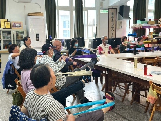 除認知訓練外,活動也安排了彈力帶拉伸運動,進行簡單的肌耐力訓練,幫助長者維持肌肉活動度與下肢穩定性,促進整體健康。活動尾聲,長輩們紛紛表示不僅「動腦又動身」。!