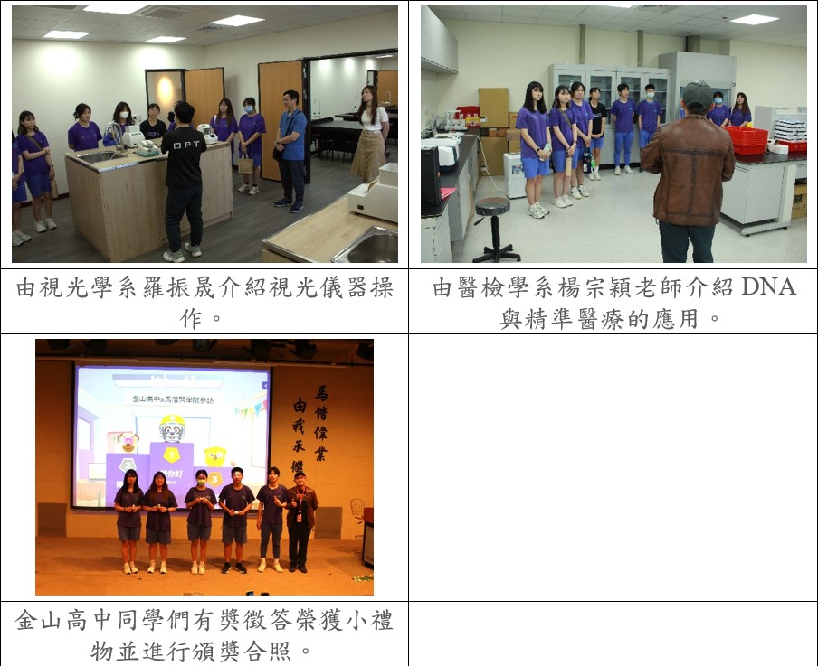 為推動生醫教育向下扎根,本校於114年6月11日邀請金山高中一、二年級學生前來參與一日大學體驗活動,實地探索五大生醫學系的學習現場,開啟對未來志向與職涯方向的深度思考。