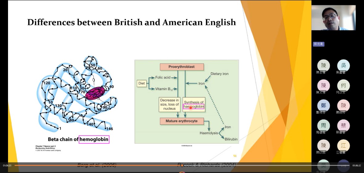 本場講座以「以第二語言進行教與學的必要性」為主軸,透過醫學術語如 hemoglobin 與 haemoglobin 的語用差異,深入探討語言對學習與表達的潛在影響。講者強調:「語言不是阻礙,而是橋樑」,並鼓勵教師運用雙語教材、英譯標註、段落式英文授課等策略,協助學生提升國際溝通力。