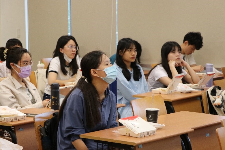 佳欣老師強調,跨領域學習讓他以新視角解決問題,成為職場優勢;他也提到,嘗試新事物,只要不偏離主要方向,就能看到不同風景,例如服飾店經歷培養的觀察力,在臨床溝通中派上用場。老師勉勵同學,人生不必是直線,迷茫是正常的,關鍵是了解自己:「你害怕什麼,什麼就可能反覆出現,逼迫你成長。」老師也分享自己在學術與臨床中如何克服焦慮。大學是建立人脈與視野的起點,認真的態度會影響他人對你的看法,為未來鋪路,而跨領域的知識像開窗,讓大家看到更大的世界。