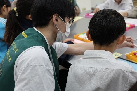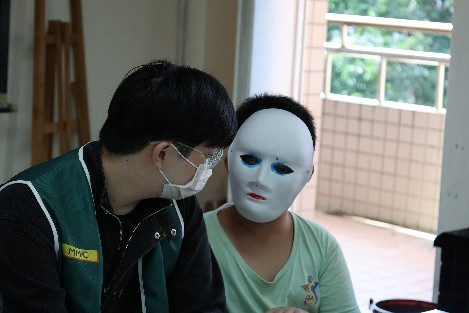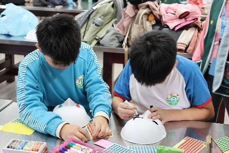 ▲本校同學引導小朋友把此刻的心情畫在面具上
