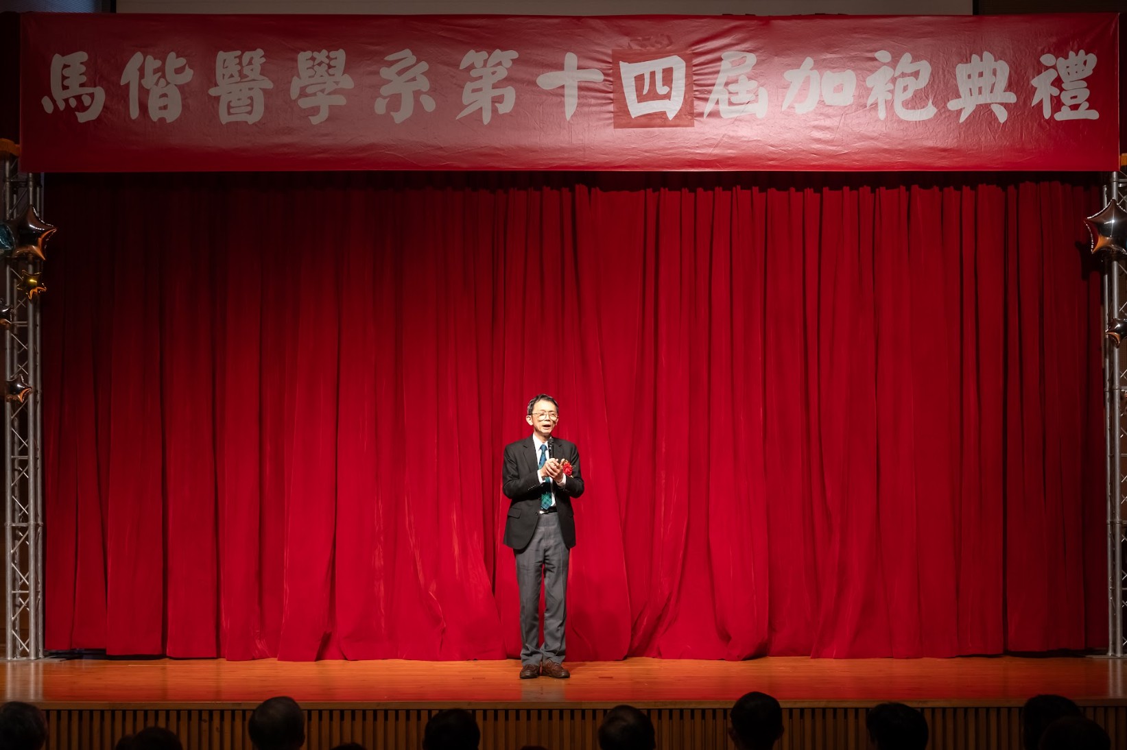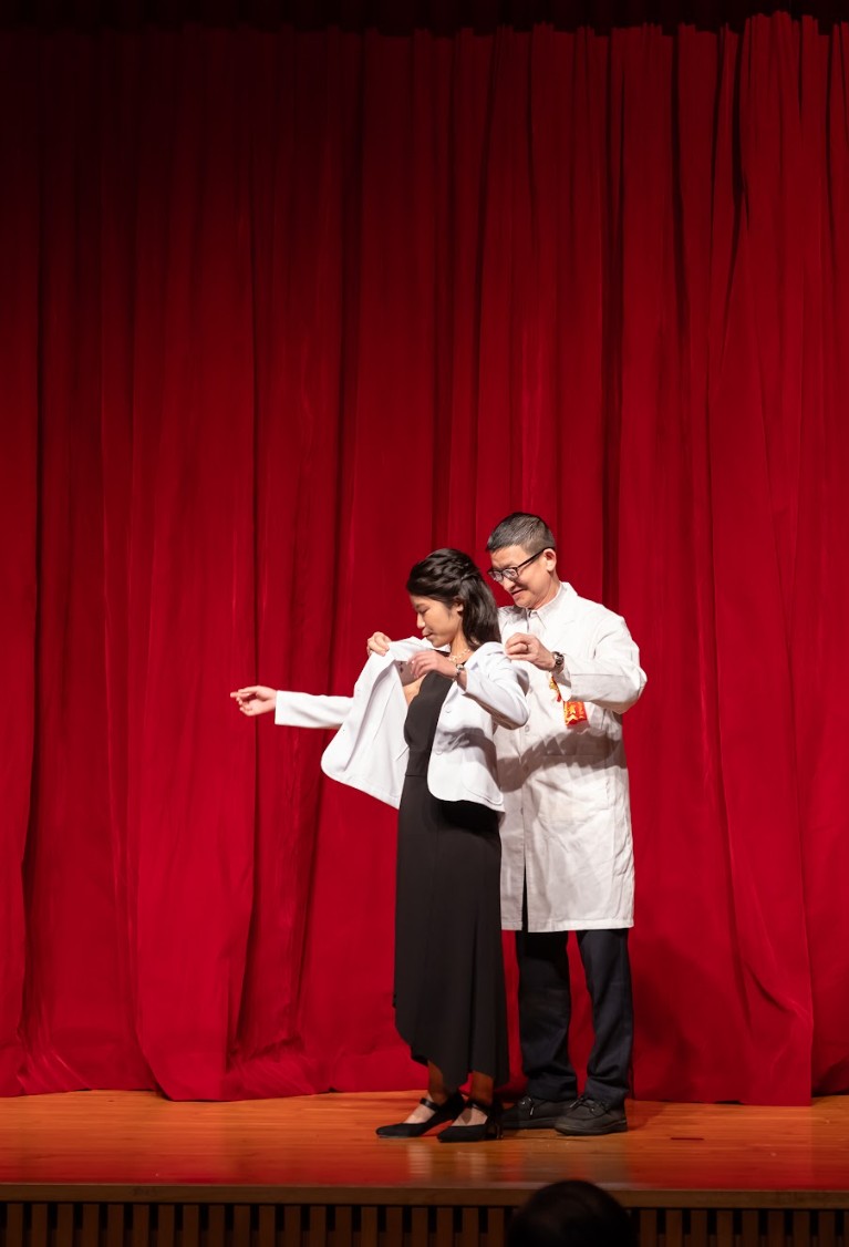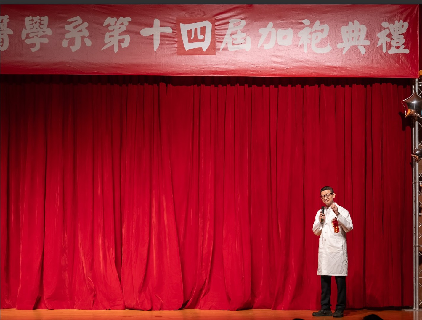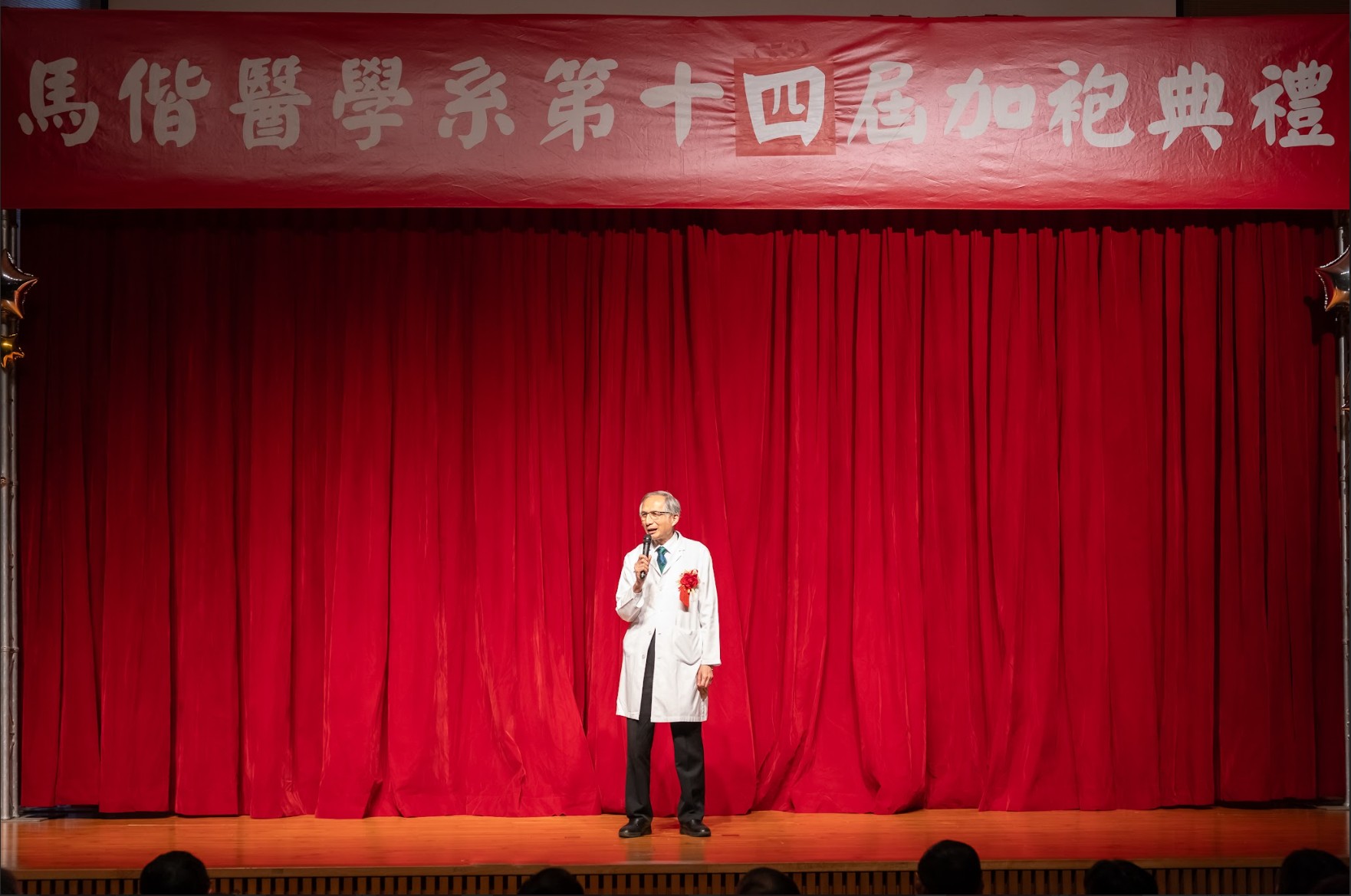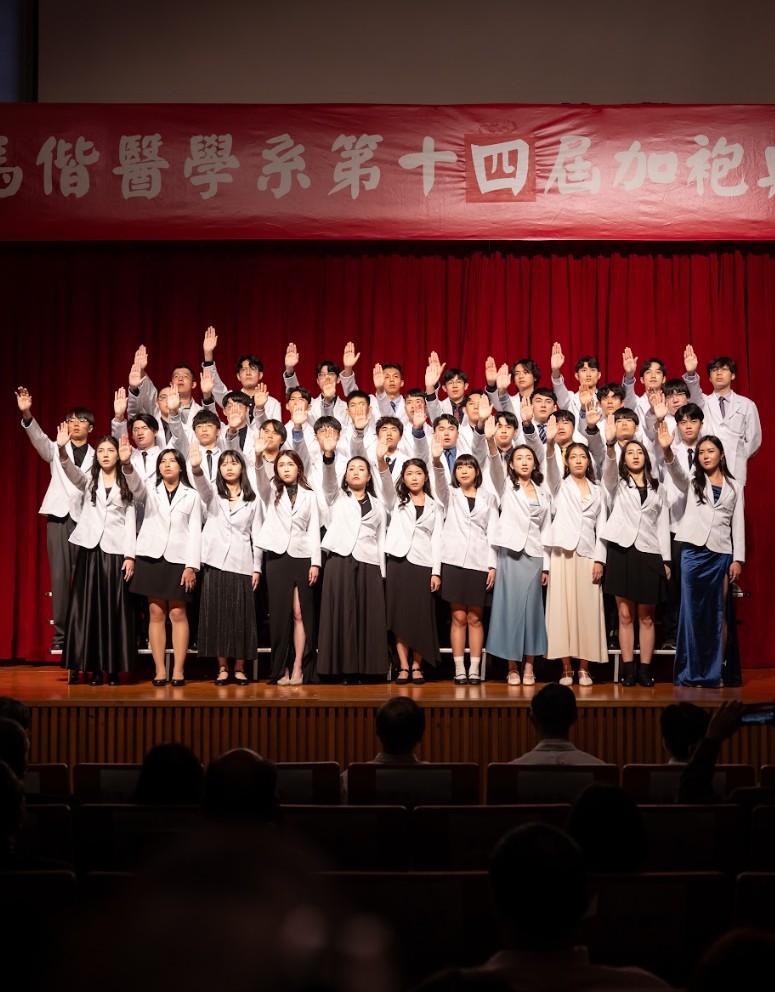 回首四年醫學系的學習歷程,無數努力與累積,化為典禮中動人的回顧影片、加袍歌演出,以及富有巧思的互動問答。同學們不僅展現扎實的專業學習成果,也在舞台上發揮多元才華與創意,呈現屬於醫學生的青春風貌與理想追求。 在加袍典禮後正式披上白袍,象徵醫學生身分的確立與責任的承擔。相信馬偕醫學系第十四屆的同學們,將以更加踏實而堅定的態度精進所學,承襲「寧願燒盡,不願鏽壞」的校訓精神,於未來的醫療道路上實踐初衷,為社會與醫界貢獻心力。