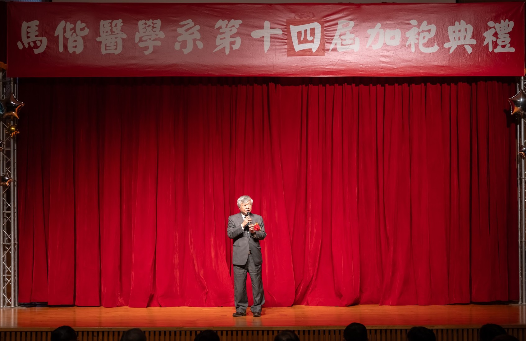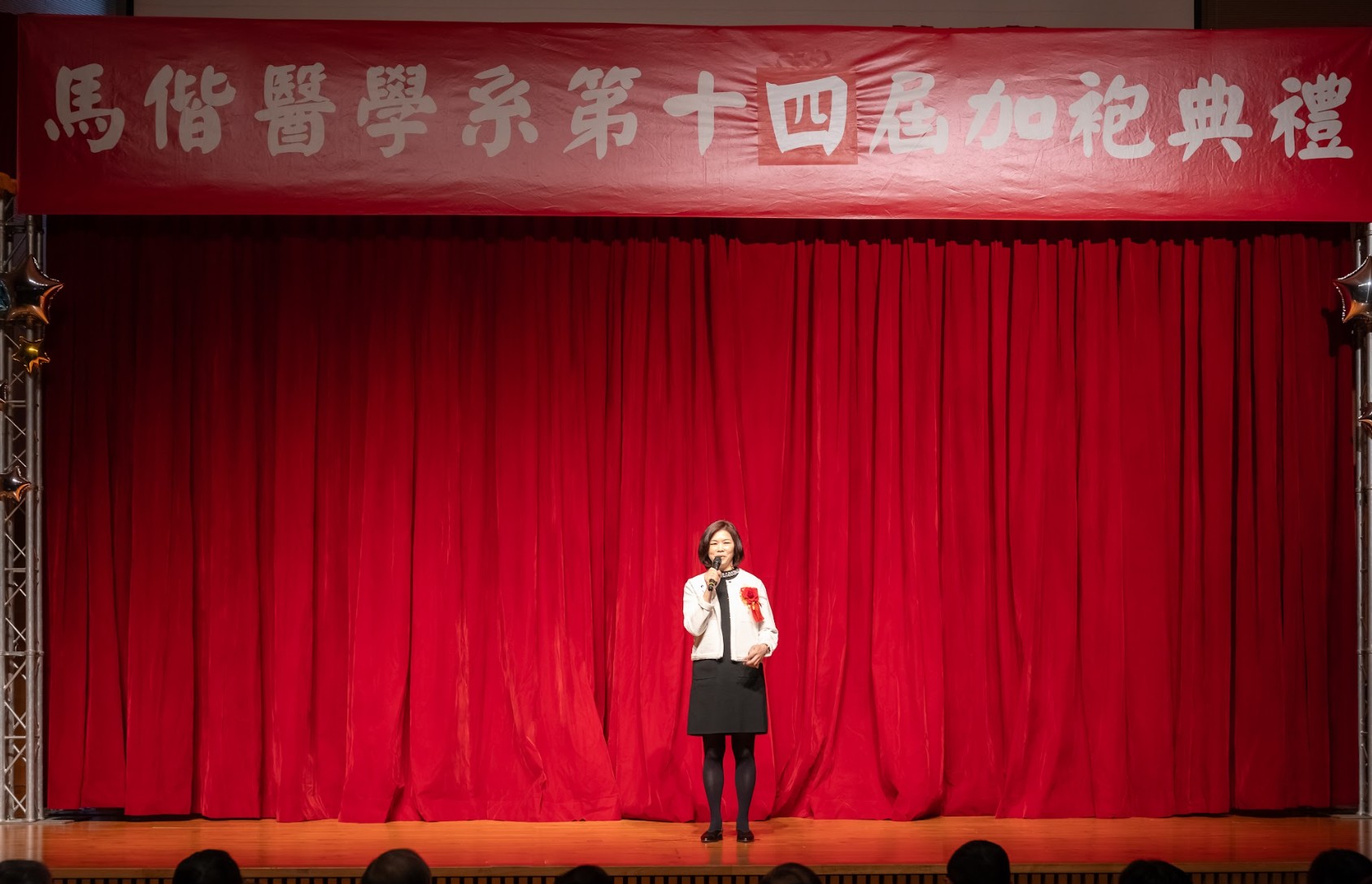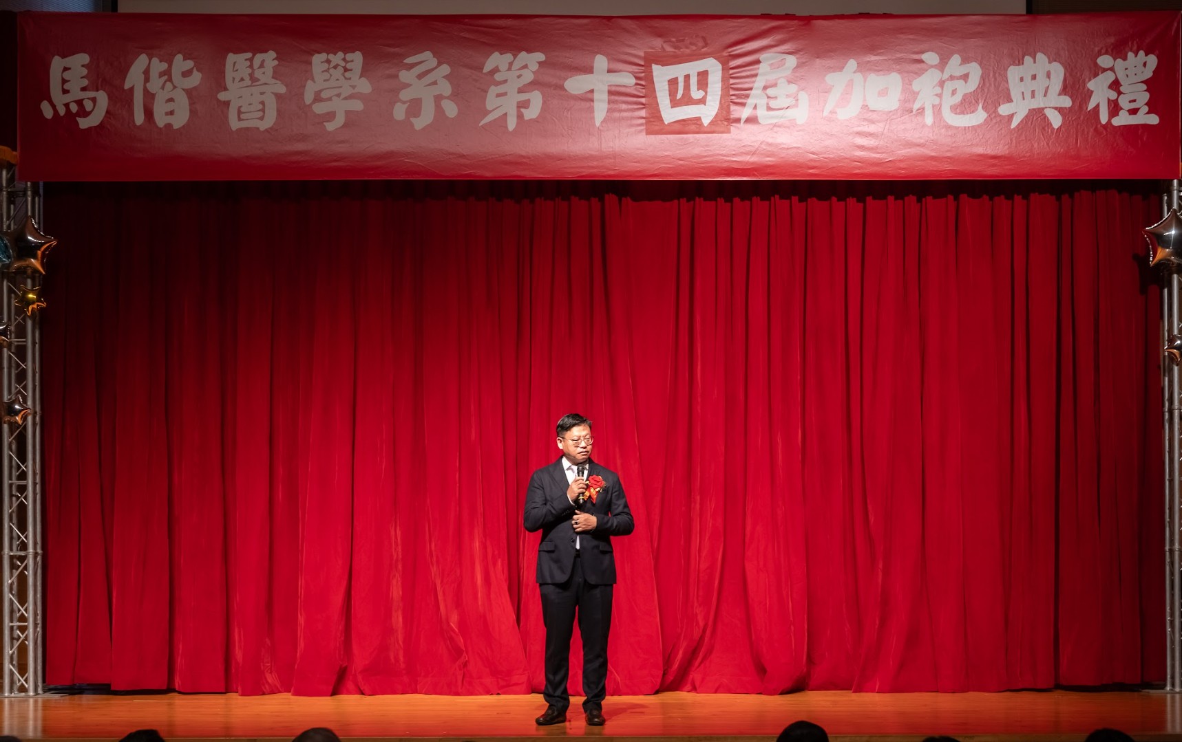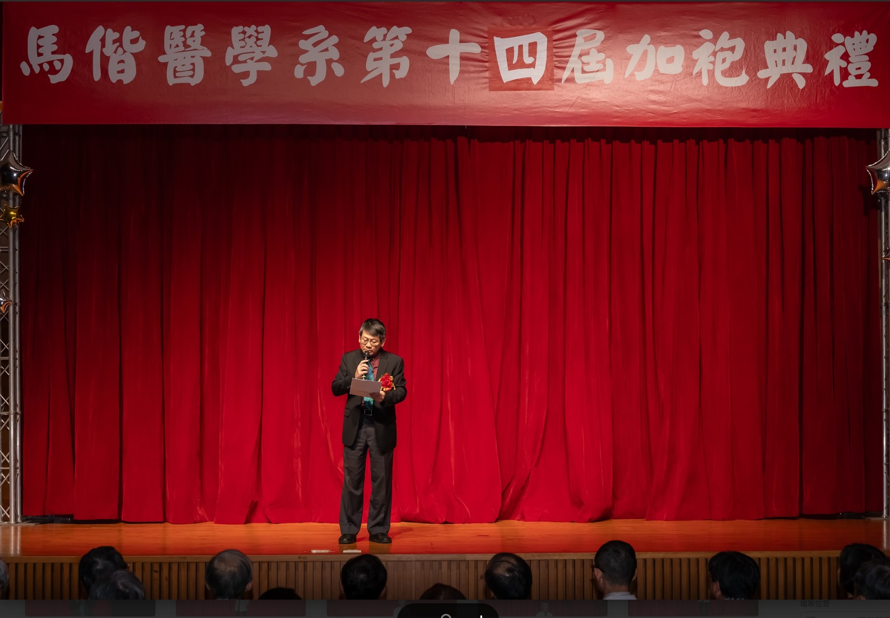 回首四年醫學系的學習歷程,無數努力與累積,化為典禮中動人的回顧影片、加袍歌演出,以及富有巧思的互動問答。同學們不僅展現扎實的專業學習成果,也在舞台上發揮多元才華與創意,呈現屬於醫學生的青春風貌與理想追求。 在加袍典禮後正式披上白袍,象徵醫學生身分的確立與責任的承擔。相信馬偕醫學系第十四屆的同學們,將以更加踏實而堅定的態度精進所學,承襲「寧願燒盡,不願鏽壞」的校訓精神,於未來的醫療道路上實踐初衷,為社會與醫界貢獻心力。