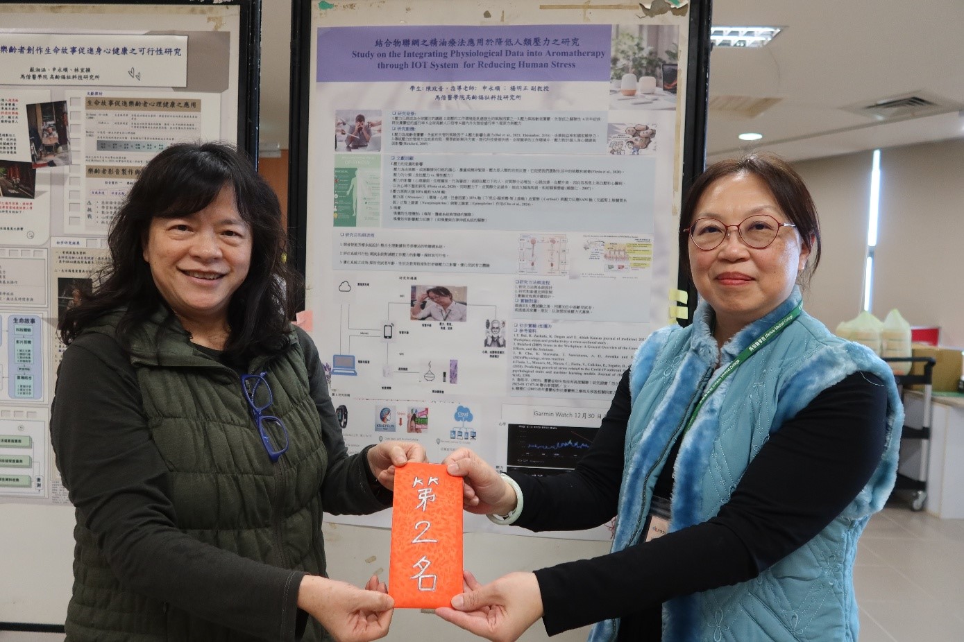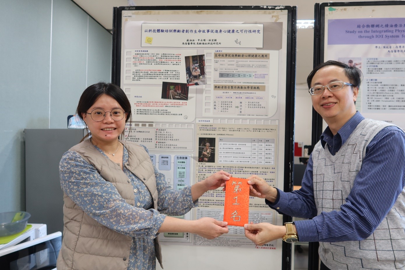 本次競賽邀請三位評審委員,誠摯感謝護理學系–楊星瑜教授、醫學系–廖恩慈教授以及福科所–黃國欽老師。本次競賽共有五件投稿作品,壁報主題包含互動科技應用、生命故事製作、精油療法、創新課程設計、情緒辨識音樂療癒系統設計,內容豐富多元富具巧思。