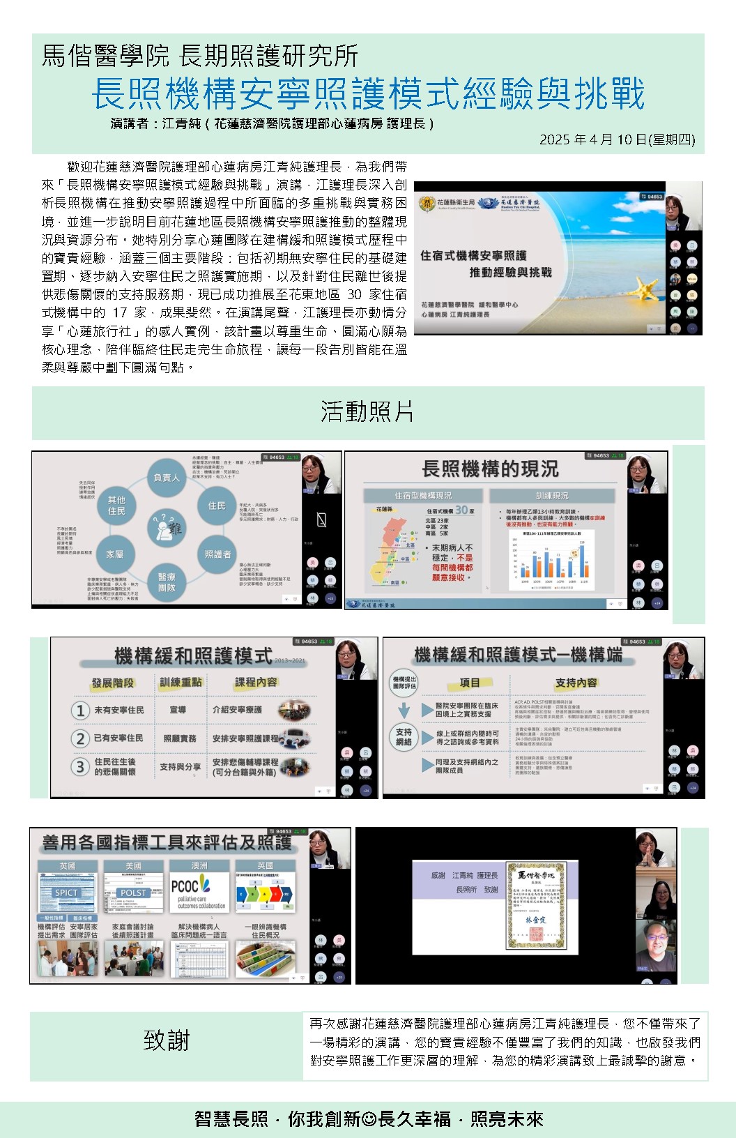 [活動回顧]  【長照所】長照機構安寧照護模式經驗與挑戰