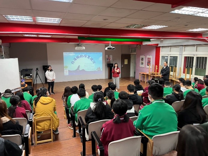 由本校與三芝國中於114年4月1日聯合辦理深耕計畫「從三芝經驗到成為北海岸典範」專題講座,安排給予三芝國中七年級學生參與的海洋芝心課程,特別邀請了來自台灣台灣蠻野心足生態協會的專員—郭佳雯老師,蒞校進行【白海豚的保育現況】專題演講。郭老師曾於動物園服務多年,在第一線照顧受傷動物,然而她選擇走出動物園,希望能在動物出現問題之前,就為牠們創造更友善的環境。她以實地觀察的經驗,分享白海豚在台灣西海岸面臨的各種困境,包括漁業活動、塑膠污染與棲地流失等現況。