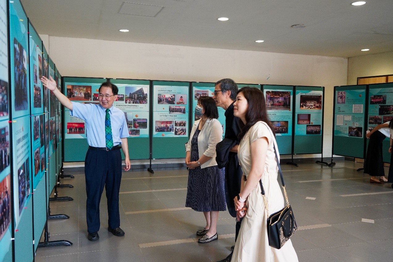 會場外舉辦創校歷程海報展,申永順主任秘書向來賓導覽介紹