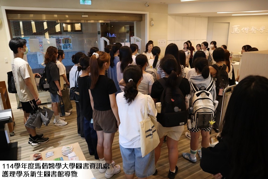 本館每學年皆針對新生舉辦圖書館導覽活動,今年學期初,分別為各學系(所)新生舉辦新生導覽,安排導覽人員介紹借書、還書、預約圖書、參考諮詢服務、資訊檢索服務、館際合作服務及推廣活動資源等,並介紹本館的各類館藏,如:參考書、電子資源、醫護人文方面等書籍,也另外安排學生實際參觀圖書館,親身體驗圖書館的各項設施與服務。