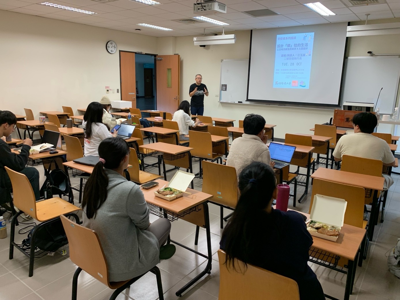 本校USR計畫「脫穎而出成為茭佼者」執行團隊與高齡福祉科技研究所於114年10月28日(星期二)在活動中心三樓K318教室舉辦專題講座,USR計畫主持人王學孝老師特別邀請到「二號空間」執行長江玉誠先生,與馬偕醫學大學師生分享三芝地區的地方創生經驗與人因設計的實踐。江執行長從多年的在地經驗出發,介紹了三芝的農產特色與各類社區活動,包含與馬偕醫學大學合作的農事體驗課程,讓學生能理解農村的勞作,了解農民工作的真實樣貌與辛勞。