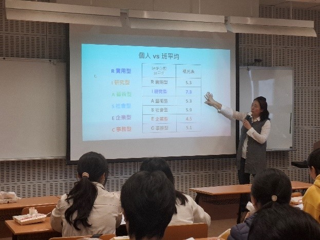 學務處為大一新生舉辦了「如何使用UCAN了解自我」工作坊,邀請王思涵講師幫同學們做UCAN測驗的解測,讓大家能從數據了解自我性格與職涯的方向。
