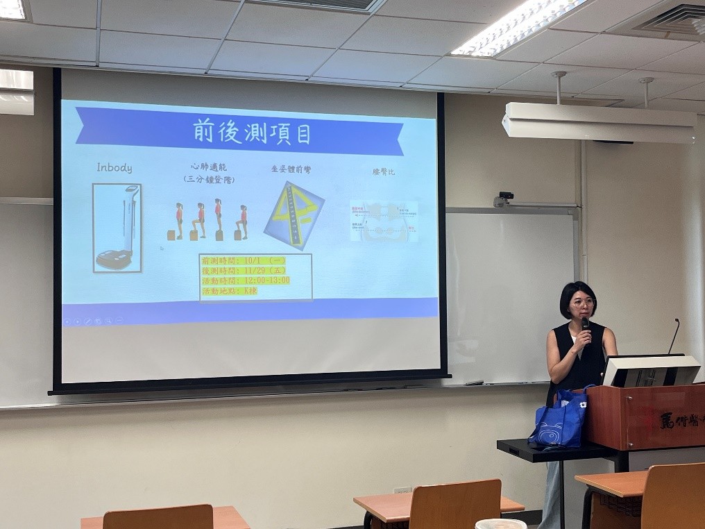 此外,特別邀請 淡水馬偕醫院營養師辦理營養講座,講題為 「吃得好也能瘦:健康減重擁有好體態」,透過專業營養知識分享,講解均衡飲食、熱量控制、代謝提升與健康減重策略,協助參與者正確認識營養原則並落實於日常飲食中。