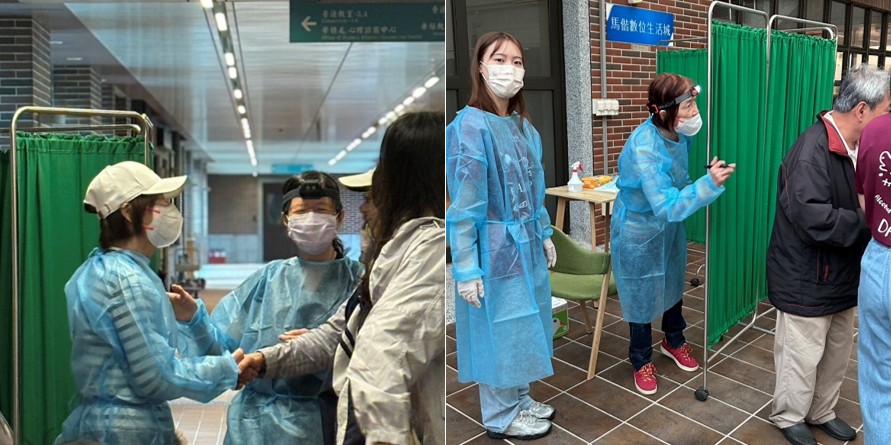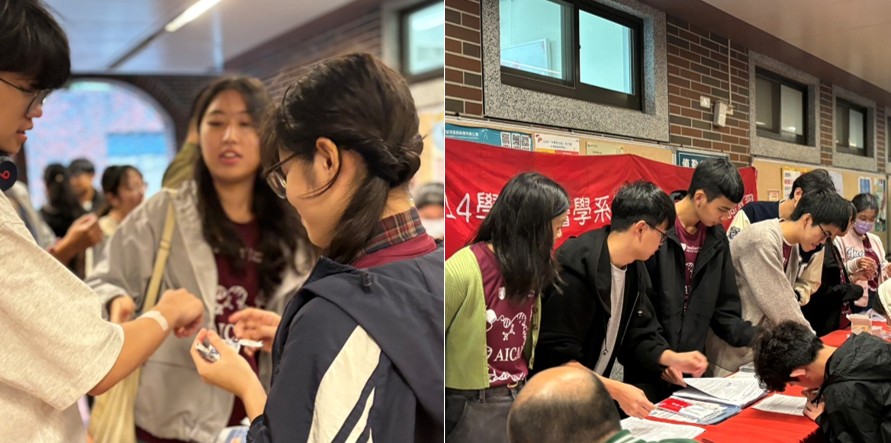 ▲(左)學生幫同學做酒精不耐症檢測、(右)學生協助問卷填寫