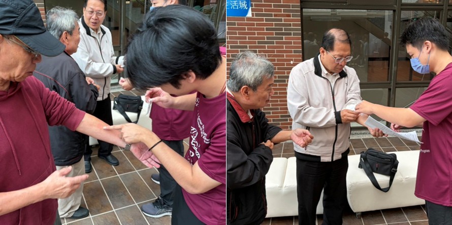 ▲(左)學生向民眾解釋檢測結果、(右) 學生向民眾做衛教